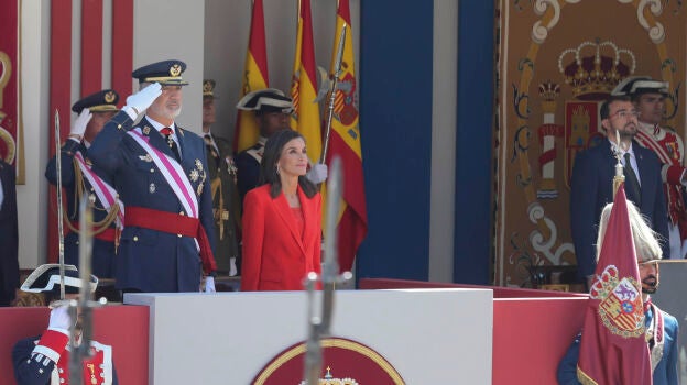Oviedo se ha volcado este sábado con las Fuerzas Armadas en un desfile de 3.250 militares presidido por los reyes Felipe y Letizia, y presenciado por miles de personas que acompañan a los tres ejércitos y a la Guardia Civil en su día, que se celebra cada año desde el inicio de la democracia. La reina ha acudido