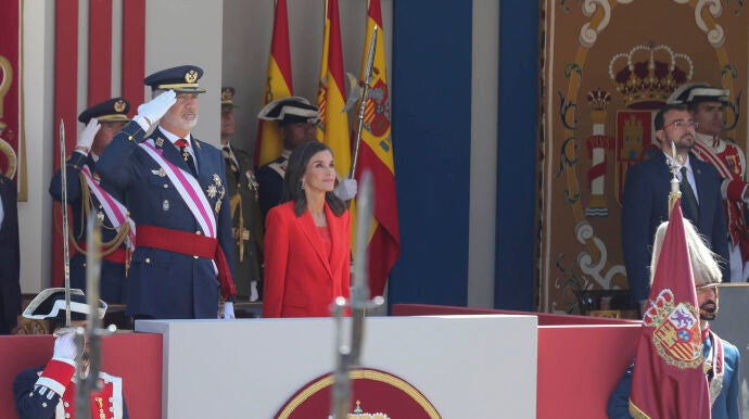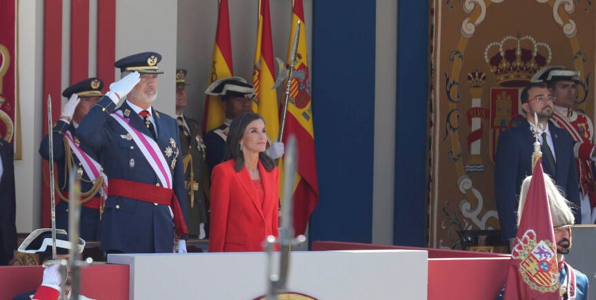 Los reyes Felipe VI y Letizia presiden el desfile del Día de las Fuerzas Armadas ante miles de personas en Oviedo