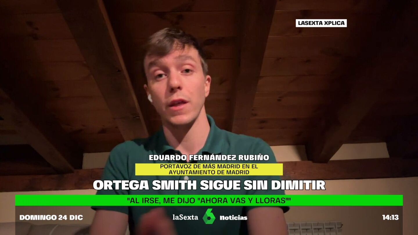 Eduardo Rubiño denunció en laSexta Xplica la agresión de Ortega Smith durante un pleno y desveló que tras este bochornoso momento le dijo "Ahora vas y lloras". "Yo no sabía si iba a entablar contacto físico", afirmó el concejal de Más Madrid.