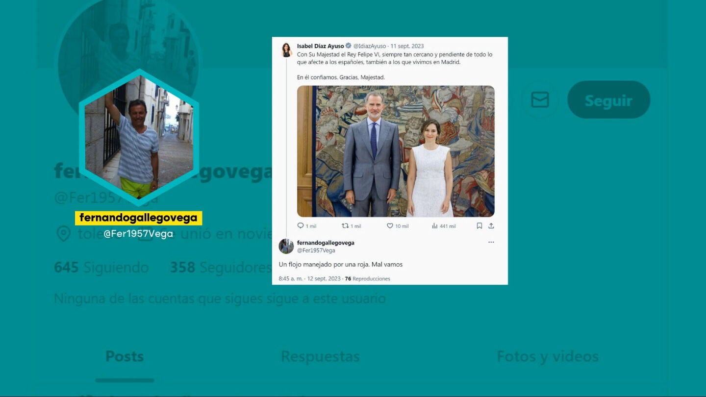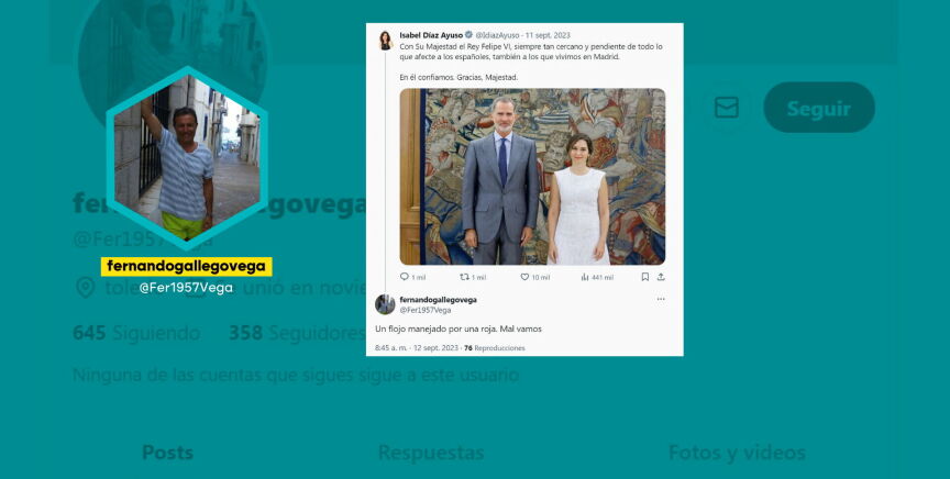 El edil popular de este pequeño pueblo de Toledo es un gran aficionado a las redes sociales y no deja a nadie indiferente. Su poco afecto hacia la reina es más que evidente. "Roja rabiosa. La que no tenía que estar ahí es ella", publica en 'X'.
