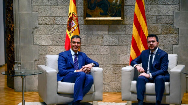 Reunión del presidente del Gobierno, Pedro Sánchez, y el president de la Generalitat en funciones, Pere Aragonès, en Barcelona. Según fuentes del Govern, el encuentro entre ambos ha transcurrido en un clima cordial y de normalidad institucional. Según las mismas fuentes a laSexta, Aragonés ha vuelto a defender que Cataluña debe tener una financiación justa y propia y le ha recordado a Sánchez que debe moverse en esta cuestión.