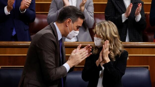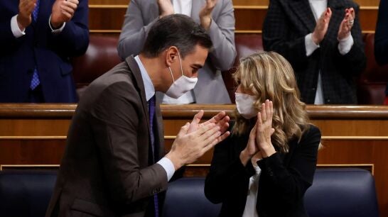 Por su parte, Yolanda Díaz se ha dirigido a las formaciones que se han posicionado en contra de la reforma para preguntarles si "volverían al modelo del PP" y si se sienten "cómodos con convenios colectivos afectados de muerte súbita". "Explíquenle a Cádiz, a los trabajadores de Endesa o a las camareras de piso que, si por ustedes fuera, mañana las personas trabajadoras se levantarían sin un derecho que hoy está vigente en nuestro país", ha señalado en su intervención en el Congreso.
