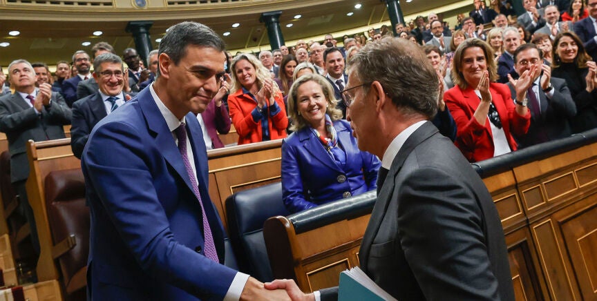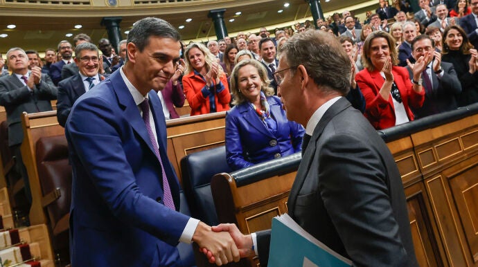 El primer cara a cara entre Sánchez y Feijóo, formado ya el nuevo Gobierno, se produce con la ley de amnistía encaminada y con visos de que su debate de enmiendas a la totalidad se produzca la segunda semana de enero, tras la celebración de la festividad de Reyes. Un tema que si ya había encrespado al PP, que sigue avisando que hará todo lo posible por oponerse a esta proposición de ley tanto en el Senado como en los tribunales nacionales e internacionales, se suma al apoyo que los socialistas navarros han dado a Bildu para desbancar a la alcaldesa de UPN en Pamplona.