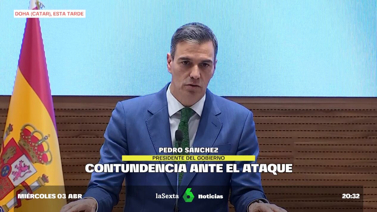 En una declaración institucional junto al primer ministro y ministro de Asuntos Exteriores del Estado de Catar, en Doha, Sánchez ha comentado que estas "explicaciones o supuestas aclaraciones que ha hecho Netanyahu son insuficientes". "Estamos esperando una explicación mucho más pormenorizada de cuáles han sido las causas y el por qué de este bombardeo", ha continuado el presidente, quien ha añadido que "lo que sabemos a esta hora es que el Gobierno israelí conocía la acción y recorrido de esta ONG sobre el terreno en Gaza y me parece absolutamente inaceptable".