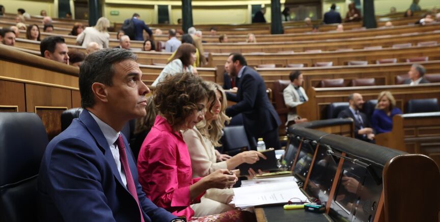 Tras finalizar su intervención, Sánchez ha abandonado el hemiciclo con gesto serio y sin responder a las pregunats de los periodistas en los pasillos del Congreso.