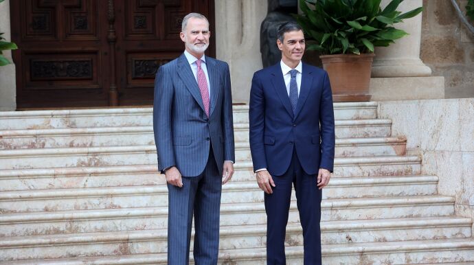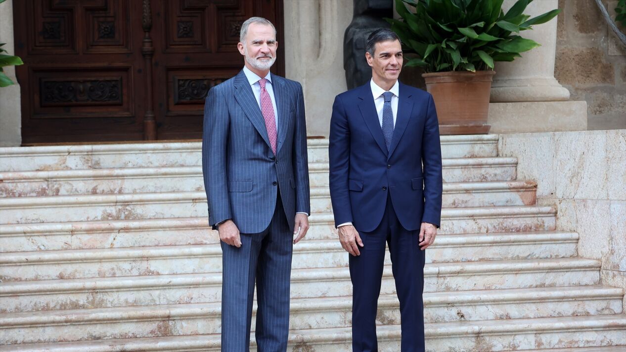 El presidente del Gobierno, Pedro Sánchez, ha mantenido este martes el despacho de verano con el rey Felipe VI en el Palacio de Marivent, en Palma. Una reunión de hora y media marcada por la situación del fiscal general del Estado, Álvaro García Ortiz, tras el último golpe judicial recibido.