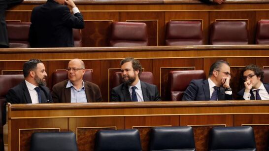 Santiago Abascal ocupó el asiento que suele ocupar la portavoz socialista, Adriana Lastra, justo detrás del presidente del Gobierno. Dos asientos a su derecha se sentó Iván Espinosa de los Monteros y se da la circunstancia que entre ellos está el parlamentario del PSC José Zaragoza.