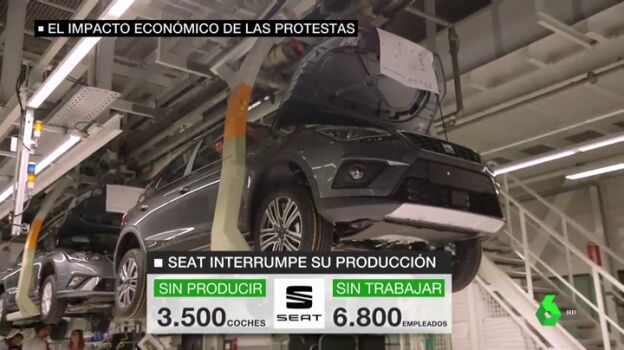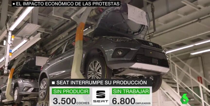 La compañía SEAT ha decidido interrumpir la producción en su planta ubicada en Martorell por las marchas independentistas y los cortes que han provocado. De esta forma, la empresa manda a casa a 6.800 empleados y deja de producir 3.500 coches.
