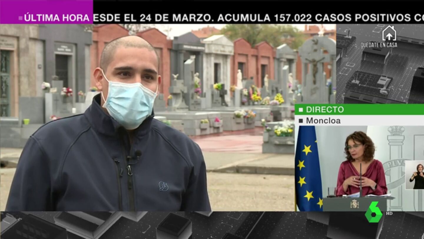 "Tenemos familia y lo que realmente cuesta trabajo es intentar no ponerte en la piel", ha explicado el trabajador que asegura que a pesar de que ellos son las personas que acompañan a los familiares de las víctimas en sus últimos momentos de vida se han vuelto "una parte invisible": "Parece ser que el los enterradores somos una parte invisible de la vida".