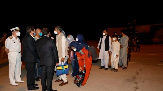 Los evacuados han sido recibidos por los ministros de Asuntos Exteriores y Migraciones, que han saludado a los civiles cansados y sin apenas equipajes, algunos de ellos familias tomadas de la mano de sus hijos.