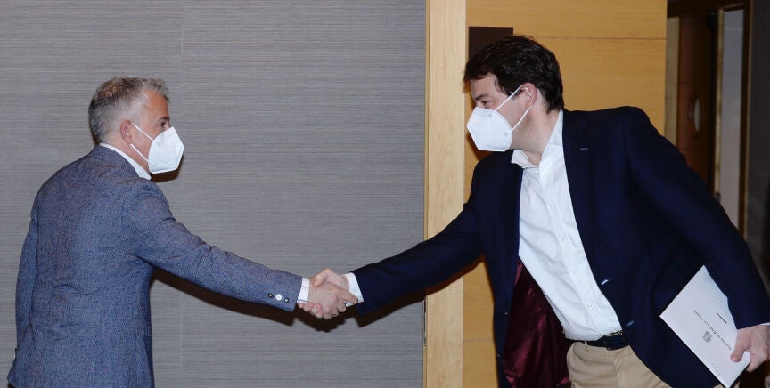 El presidente en funciones de la Junta, Alfonso Fernández Mañueco, y el portavoz de Soria Ya -partido que consiguió tres procuradores en las pasadas elecciones-, Ángel Ceña, han mantenido este sábado una reunión enmarcada dentro de la ronda de contactos del PP para lograr un acuerdo de gobernabilidad en la Comunidad.