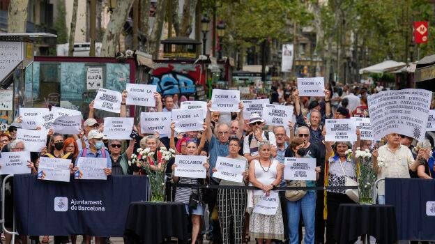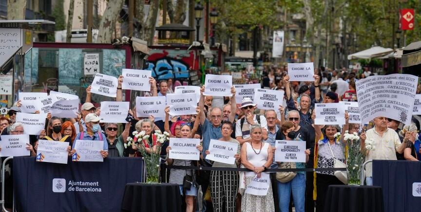 Cinco años después de los atentados que sacudieron Barcelona y Cambrils, el homenaje a las víctimas de 17-A ha estado marcado por la tensión. Decenas de independentistas han boicoteado el acto institucional de este miércoles en Las Ramblas, con gritos y abucheos a los políticos, incluso durante el minuto de silencio.