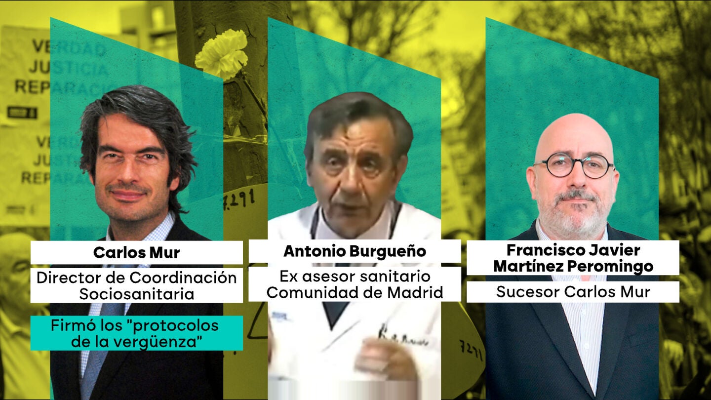 Este viernes, el director de Coordinación Sociosanitaria y firmante de los 'protocolos de la vergüenza', Carlos Mur, y, el coordinador del llamado 'protocolo técnico', Francisco Javier Martínez Peromingo, que más tarde sustituyó a Mur, fueron imputados y citados a declarar el próximo lunes 26 de mayo al ser considerados los autores de los protocolos que bloquearon el traslado hospitalario de miles de ancianos desde residencias al inicio de la pandemia, en busca de esclarecer si las muertes se pudieron evitar.