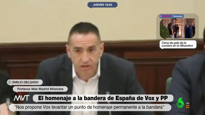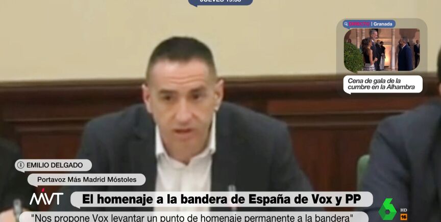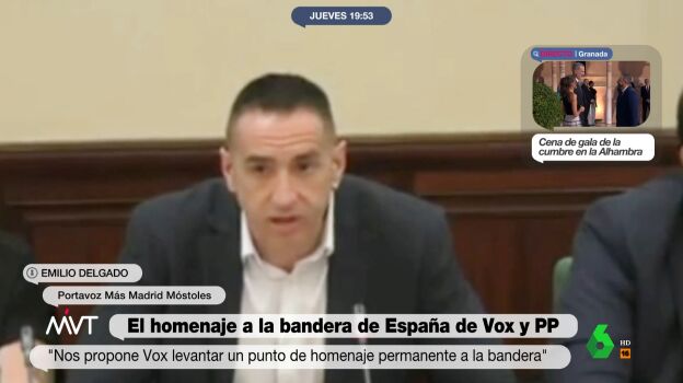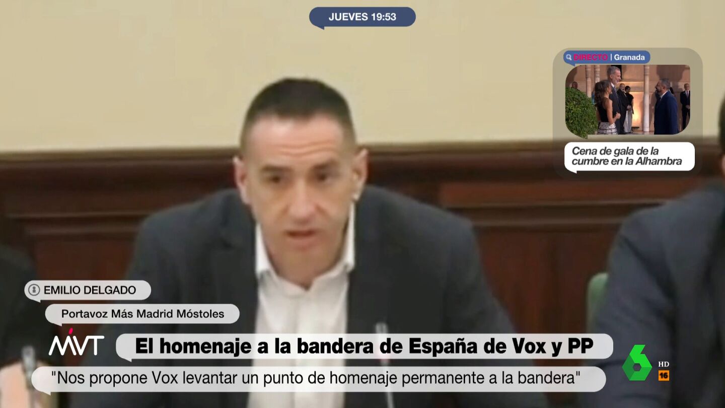 El Ayuntamiento de Móstoles ha aprobado crear "un punto de homenaje permanente a la bandera de España" en el municipio. Es una propuesta de Vox, que ha sido apoyada por el PP. La oposición, lejos de criticar la medida por lo innecesaria que es, el portavoz de Más Madrid en el Consistorio, Emilio Delgado, ha tirado de la sátira y el humor para 'trolear' a la ultraderecha. "Pensamos que sería imprescindible tener como mínimo un punto de homenaje a la bandera de España en cada habitación", ha ironizado, en un discurso fluido que ya es viral por su originalidad.