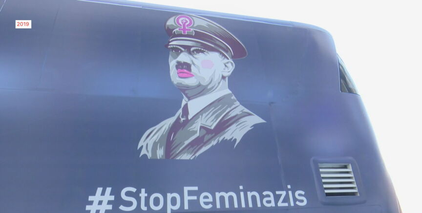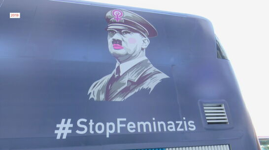 Le siguen los ultracatólicos Hazte Oír, que han paseado hoy por los juzgados de Plaza Castilla un autobús comparando a la familia de Sánchez con la de la película El Padrino y cuya querella ha sido el motivo del aplazamiento de la declaración. Suyos eran también otros vehículos con mensajes tránsfobos y antifeministas. El colectivo ha presentado iniciativas judiciales para frenar las leyes contra la violencia de género y a favor del aborto y del matrimonio homosexual.