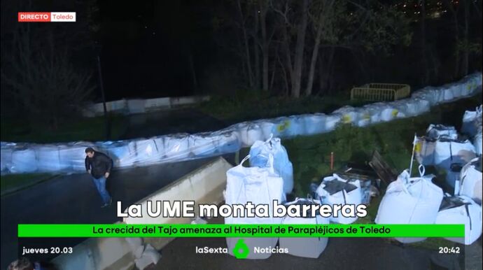 Por su parte, el alcalde de Toledo, Carlos Velázquez, que también ha visitado las inmediaciones del hospital, ha agradecido el trabajo de la UME en la instalación del muro de contención para proteger el entorno del centro sanitario. En un comunicado de prensa, ha transmitido un mensaje de "calma, prudencia y tranquilidad", ante el posible incremento del caudal en las próximas horas, que podría afectar a los quirófanos y al centro de investigación del hospital.