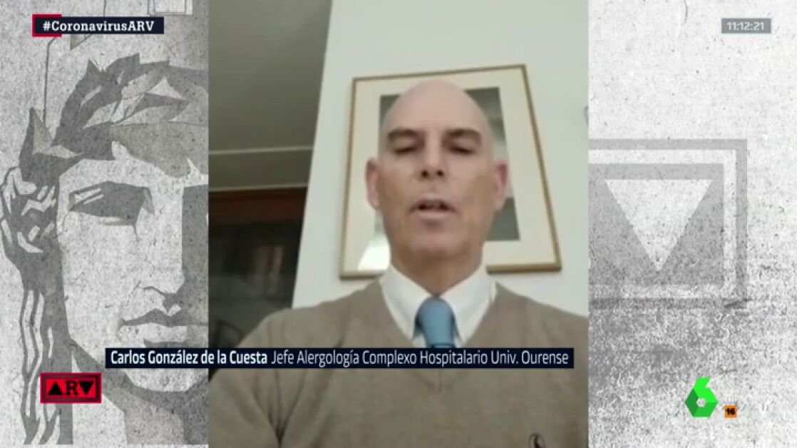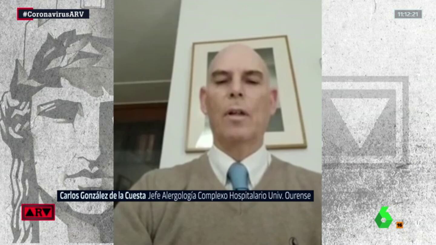 El jefe de sección de Alergología del Complexo Hospitalario Universitario de Ourense (CHUO), Carlos González de la Cuesta, ha difundido un vídeo en el que, tras identificarse como médico, rechaza la "vacunación obligatoria" y tacha de "experimento genético" la vacuna, al tiempo que anima a la población a investigar sobre el tema en la página web de la plataforma Médicos por la verdad.