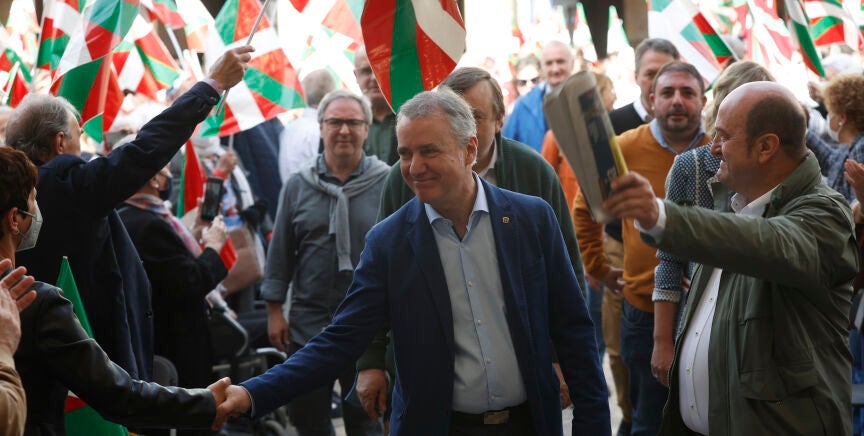 Tras apuntar que el PNV va a seguir impulsando medidas transformadoras para que Euskadi haga frente a la transición digital, la transición ecológica y la transición social, ha destacado que es un País "solvente". "Tras la pandemia, nuestra riqueza per cápita está por encima de la media europea; la Unión Europea ha calificado Euskadi como Polo de excelencia en innovación; lideramos el ranking europeo de población entre 25 y 34 años que ha completado estudios terciarios; tenemos una deuda pública del 16,3% de nuestro PIB frente al 90% de media en Europa; Euskadi está entre los tres países europeos con tasas de pobreza más bajas", ha enumerado.