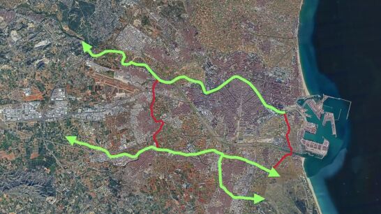 Esta 'regeneración inteligente' de las riberas del Turia y del Poyo, pensada para la protección de las personas, se dividirá en dos ramales: uno de 10,5 km que prolongará el Jardín del Turia hasta la pinada de La Vallesa, y otro por el Poyo, que sigue el recorrido que dibujó el agua de la DANA hasta llegar a la Albufera y que a su vez se subdividirá en un brazo principal de 18,5 km desde el parque natural de la Albufera hasta Picanya y otro de 5,5 km hasta Massanassa y Catarroja.