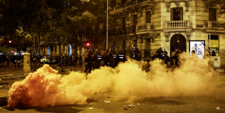 Durante la movilización, algunos manifestantes han encendido bengalas y se han lanzado diversos objetos como botellas, petardos o incluso huevos, con la respuesta de la Policía en lo que ha sido el momento más tenso de la manifestación, con imágenes muy parecidas a las vividas durante los disturbios del lunes. Por estos disturbios se han producido nuevas detenciones.