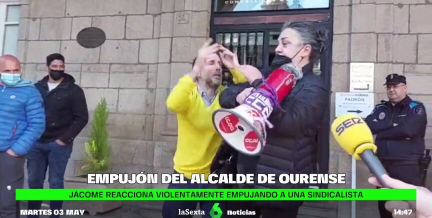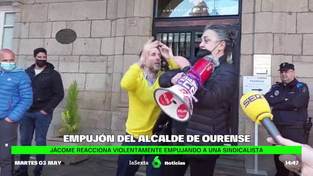El alcalde, de la formación de derechas Democracia Ourensana y que gobierna en coalición con el PP, ha intentado justificar los hechos. "Viene con un megáfono hacia mí y viene acosándome físicamente. Yo en ese momento veo que se va a producir una agresión acústica porque obviamente me puede romper el tímpano y en ese momento yo reacciono de forma instintiva", ha dicho.