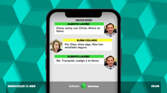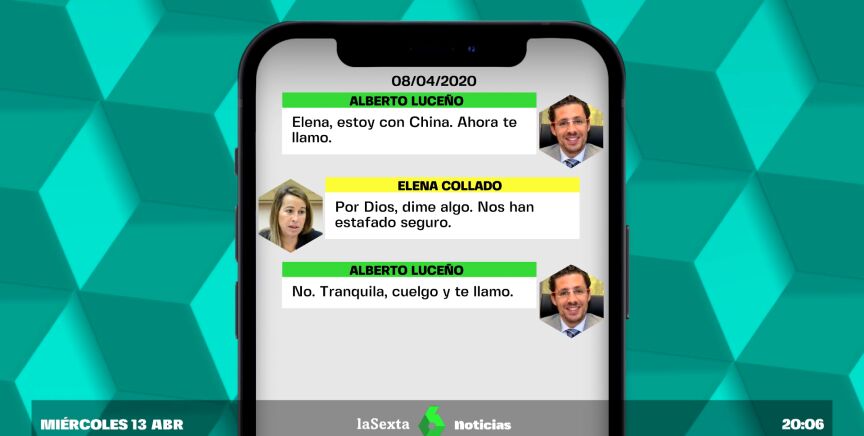 "Por favor, llámame. Esto es lo peor que me ha pasado en la vida", le escribió la encargada de compras, a lo que el comisionista Luceño respondió: "Elena, estoy con China. Ahora te llamo".