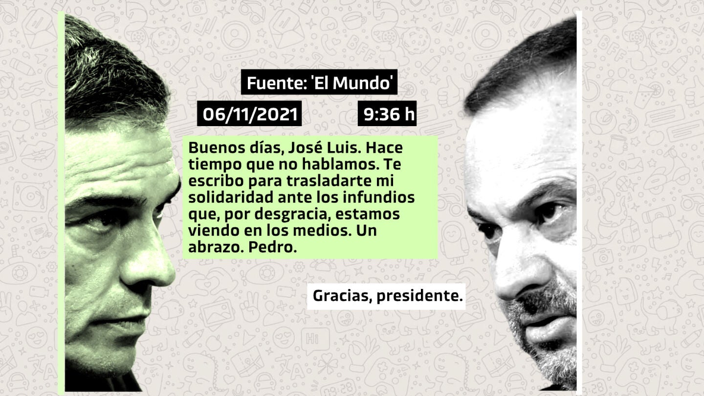 "Buenos días, José Luis. Hace tiempo que no hablamos. Te escribo para trasladarte mi solidaridad ante los infundios que, por desgracia, estamos viendo en los medios", le escribió Sánchez el 6 de noviembre.