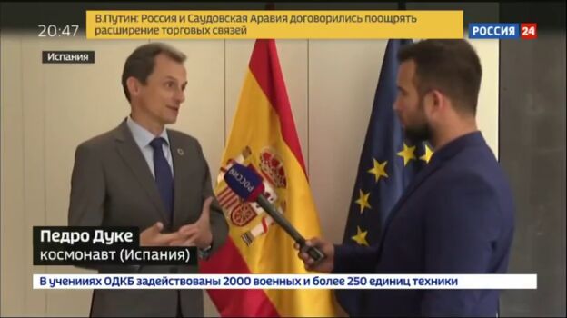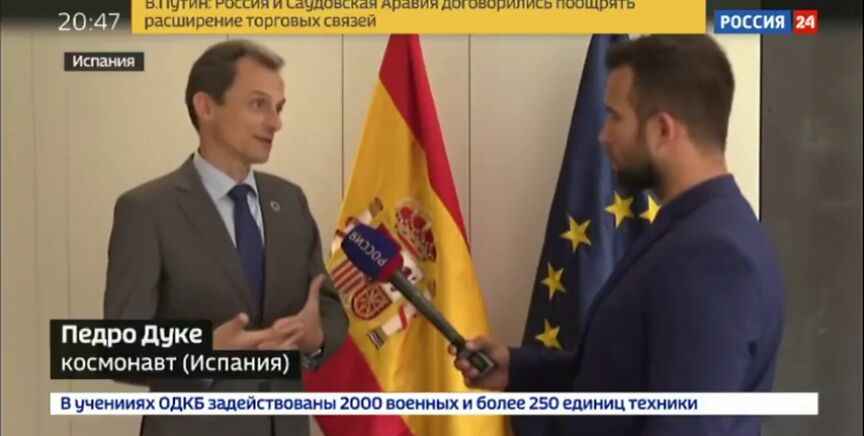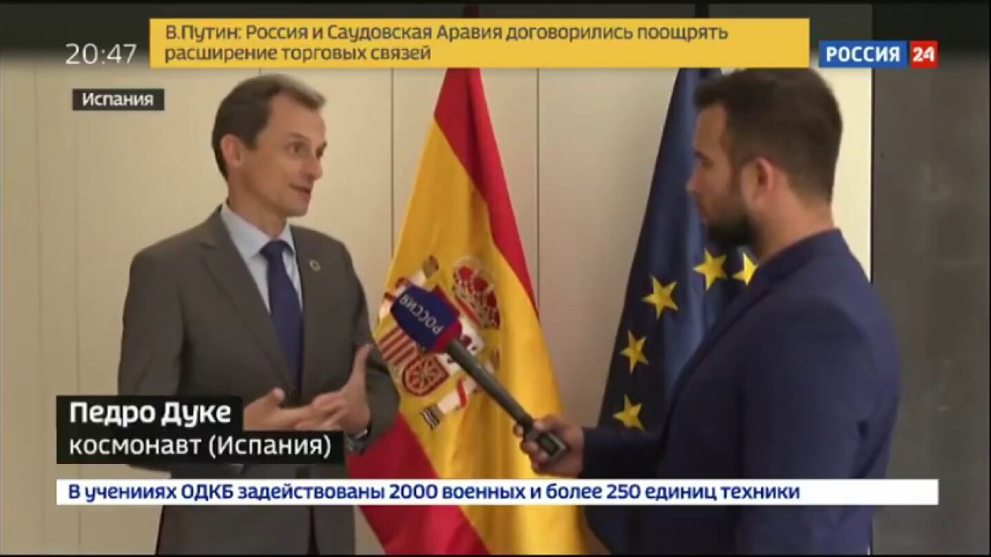 El ministro de Ciencia, Innovación y Universidades en funciones, Pedro Duque, se ha lanzado a atender a los medios de comunicación rusos interesados en la situación que se vive en España tras conocerse la sentencia del juicio del 'procés'. Lo ha hecho explicando la importancia del fallo en un ruso muy fluido.