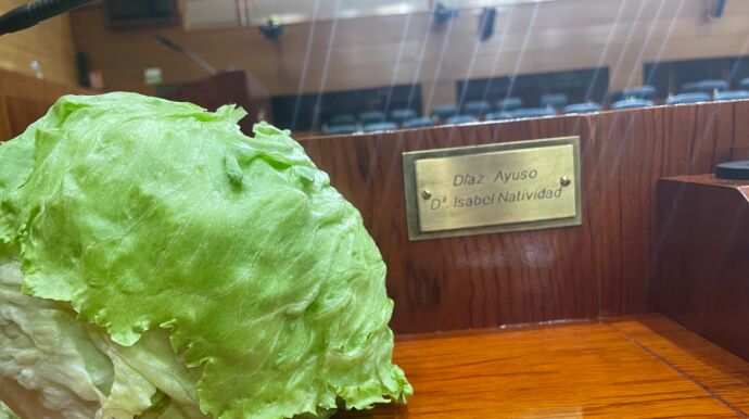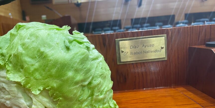 Más Madrid coloca una lechuga en el escaño de Ayuso tras la dimisión de Liz Truss