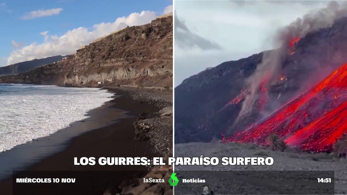 El antes y el después de la playa de Los Guirres, un paraíso surfero engullido por la lava