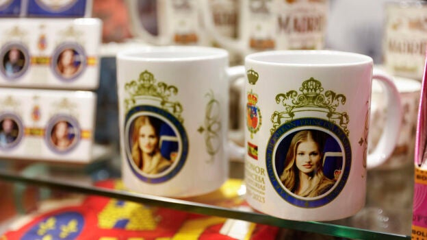 Tazas, imanes y bandoleras con su rostro o gildas y bizcochos conmemorativos son el resultado del fenómeno fan que está generando la princesa Leonor en su 18 cumpleaños.