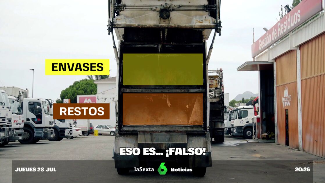 Otro mito, el de que al final la basura que depositamos en diferentes contendores acaba mezclándose. Esto pasa porque por lo general vemos como un mismo camión recoge los residuos de dos contenedores distintos y lo cierto es que se recoge por separado, se transporta por separado y se descarga por separado. Dentro del camión hay una planta encima de otra, lo que permite el correcto reciclaje.