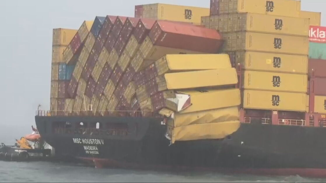 El portacontenedores MSC Houston V, que cubría la ruta entre el puerto griego del Pireno y Liverpool, ha sufrido un desplazamiento de su carga y ha provocado que decenas de sus contenedores cayesen al mar frente a las costas viguesas.