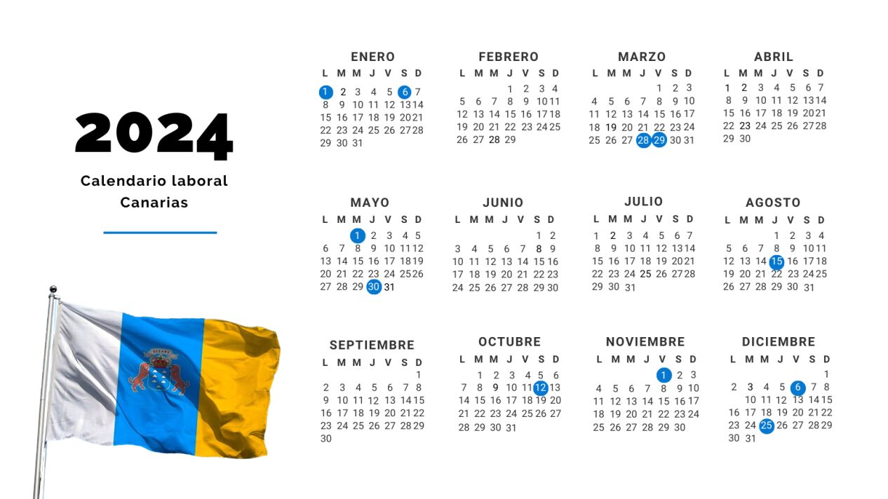 Las islas Canarias tienen el calendario de fiestas laborales de 2024 aprobado y tal y como está legislado, los trabajadores de la Comunidad Autónoma cuentan con un total de 14 jornadas festivas no laborables de las cuales dos son locales y deben establecerse por cada ayuntamiento. Además, en Canarias, a diferencia de otras regiones peninsulares, uno de los festivos de los doce establecidos por el gobierno autonómico es exclusivo para cada isla.