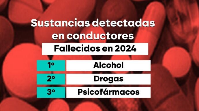 Casi la mitad de los conductores fallecidos en accidentes de tráfico el año pasado dieron positivo en alcohol, drogas o psicofármacos, según datos de la DGT. De los casi 1.000 conductores fallecidos, 452 presentaron estas sustancias en su organismo. Además, el 23% superaba una tasa de alcohol en sangre de 1,20 g/L, muy por encima del límite legal de 0,50 g/L. El perfil predominante de las víctimas es masculino (88,8%) y el grupo de edad más afectado es el de 35 a 44 años. El alcohol es la sustancia más común, seguida de drogas y psicofármacos. También el 42,6% de los peatones fallecidos dieron positivo en estas sustancias.