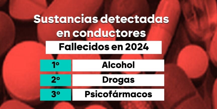 El 48,2%, o lo que es lo mismo, casi la mitad de los conductores fallecidos en accidentes de tráfico el año 2024 dieron positivo en alcohol, drogas o psicofármacos. Estamos hablando de 452 personas de un total de casi 1.000 conductores.