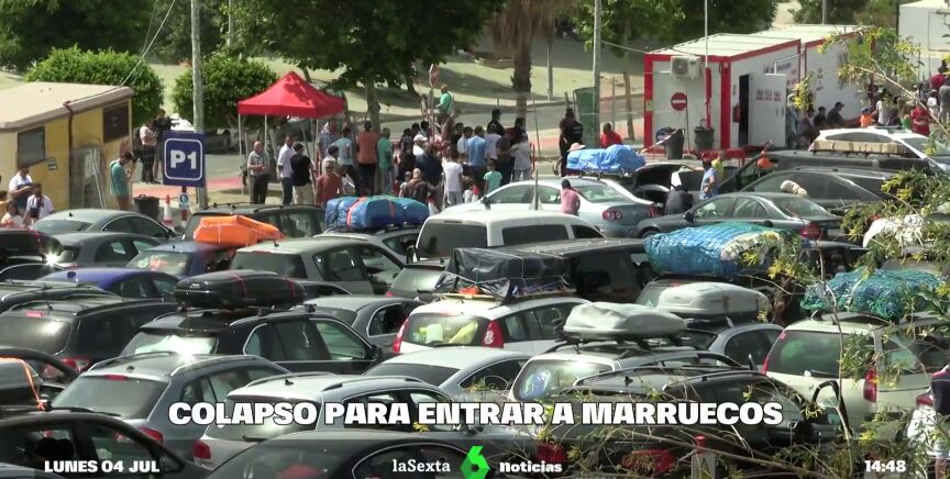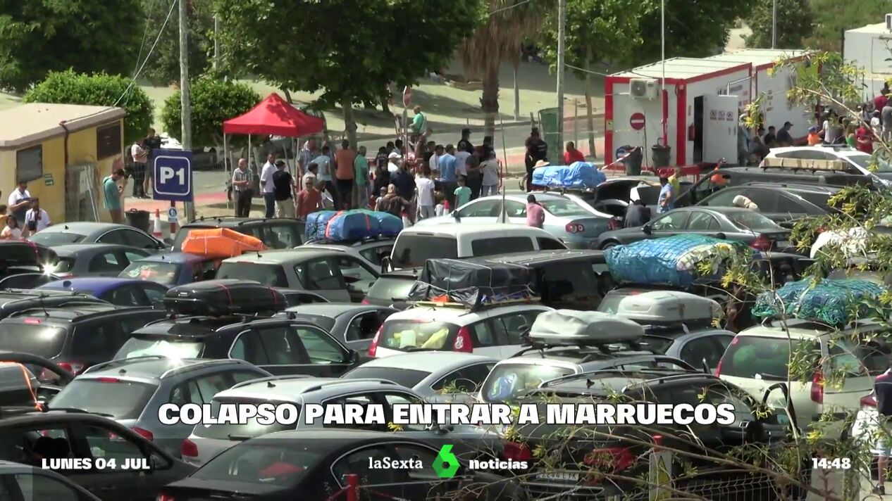 Este lunes, la imagen del paso del Tarajal, la frontera entre Ceuta y Marruecos, ha resultado impactante: colas de vehículos hasta donde alcanza la vista. Algunos, con el coche en marcha y el aire acondicionado activado para que los pequeños aguantaran el calor; otros, guareciéndose fuera, en la sombra, para evitar el sol. Llevan horas esperando. El tiempo medio para atravesar el cruce es de siete horas.