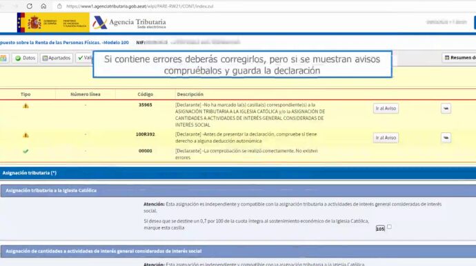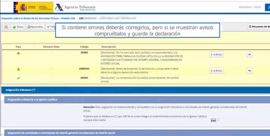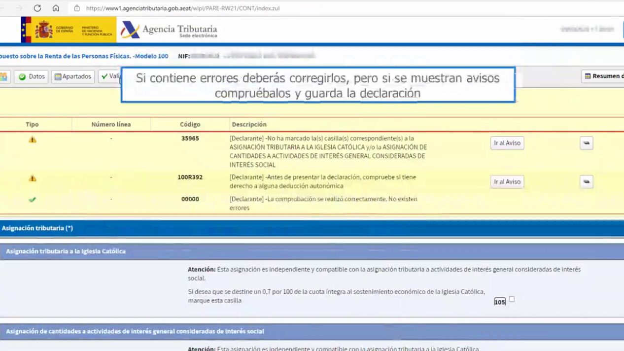 5. Validación: deberás validar la declaración para comprobar si contiene algún error.