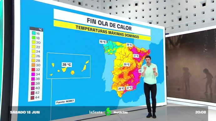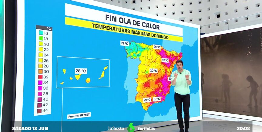 Pero no son todo malas noticias. Con el descenso de las temperaturas que esperamos para mañana, España da por terminada, en principio, la ola de calor, aunque todavía se rondarán los 40 grados en zonas del este del país. Especialmente, como se indicaba al principio, en el territorio valenciano y en parte del catalán, pero también en Zaragoza, donde se esperan unos 37 grados; en Granada, también con 37; o Baleares, territorio autonómico en el que se espera rondar los 36 grados.