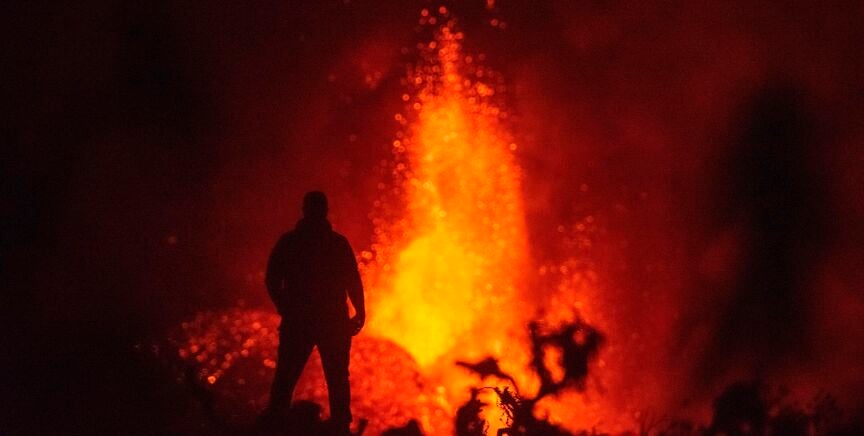 Según las últimas estimaciones, el volcán ya ha escupido más de 80 millones de metros cúbicos de magma, casi el doble que el volcán Teneguía, que erupcionó en 1971. En cuanto a la destrucción en tierra, 946 edificaciones han desaparecido de un total de 1.074 afectadas.