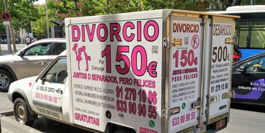 Un innovador modo de separarse ha llegado a Leganés: los vecinos han sido sorprendidos por la aparición de tres vehículos que publicitan divorcios por tan solo 150 euros.