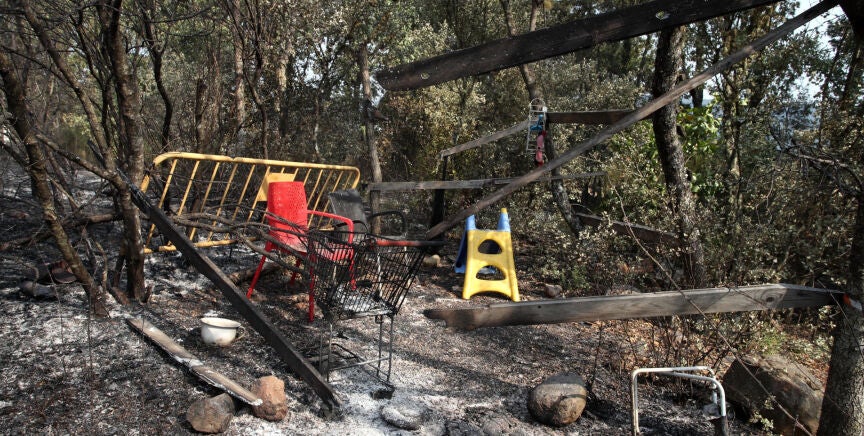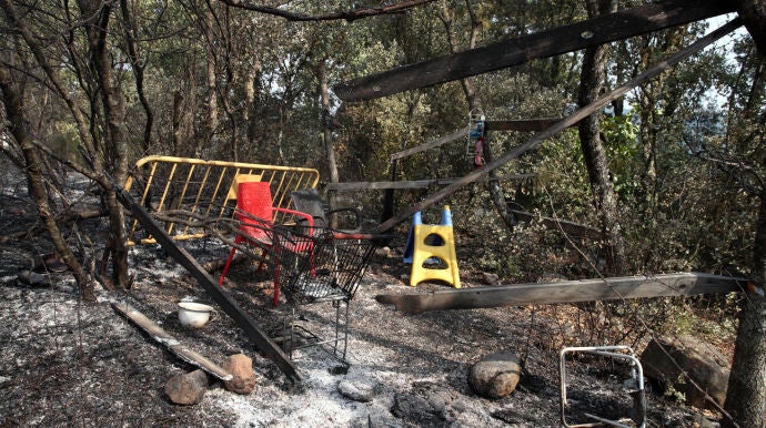 Con mangueras a presión, los bomberos refrescan las casas aún calientes afectadas por el fuego que ya ha calcinado 1.500 hectáreas. "Vimos como nuestro futuro se nos iba, se iba nuestro pueblo", lamentan los vecinos llenos de dolor y tristeza al observar cómo el paraje natural en el que viven y considerado Patrimonio de la Humanidad ha quedado calcinado.