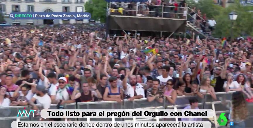 Una ola de indignación y rabia ha recorrido la Plaza de Pedro Zerolo este miércoles contra el alcalde de Madrid, José Luis Martínez-Almeida, y la vicealcaldesa, Begoña Villacís, a quienes acusan de "boicotear" la celebración del Orgullo por la suspensión de los conciertos previstos en la PLaza del Rey de la capital. Durante la conexión en directo que ha realizado Más Vale Tarde para informar de la actuación que iba a llevar a cabo Chanel, con pregón incluido, se han escuchado duros reproches contra el dirigente madrileño.