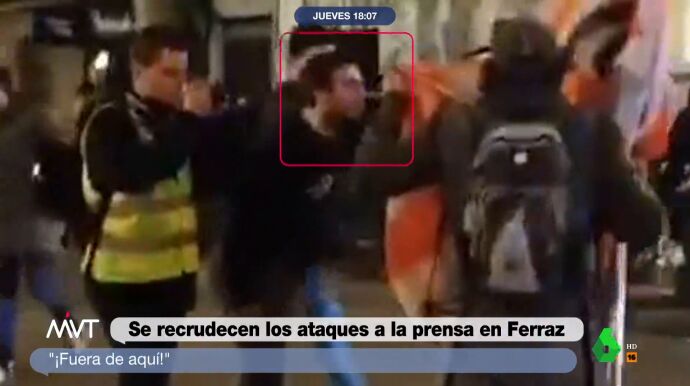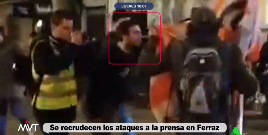 Como cada día desde hace más de dos semanas, algunos radicales atacaron con insultos y empujones a los periodistas de laSexta, e incluso, llegaron a escupir a la reportera, tal y como se puede ver en el vídeo principal de esta noticia.
