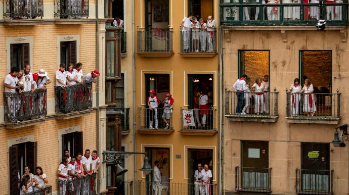 Alojarse en Pamplona durante las fiestas de San Fermín no es sencillo, ni barato. Tampoco lo es hacerse con uno de los deseados balcones del centro de la ciudad, desde los que ver los encierros en primera fila.