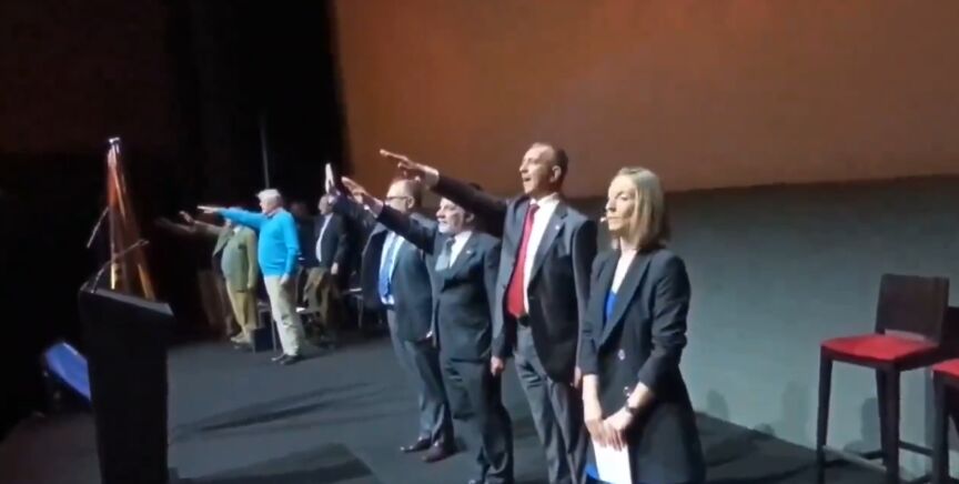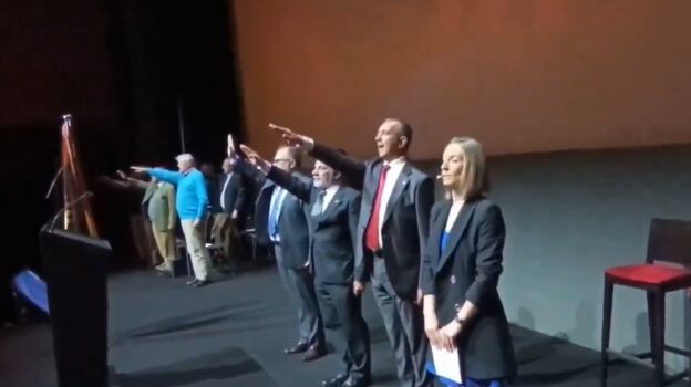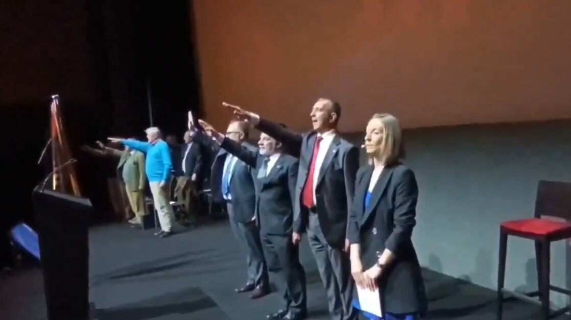 Durante el acto, como se ve en las imágenes que acompañan a esta noticia, se han proyectado imágenes contra la Ley de Memoria Democrática, así como el cierre de un acto en el que se hizo el saludo fascista.
