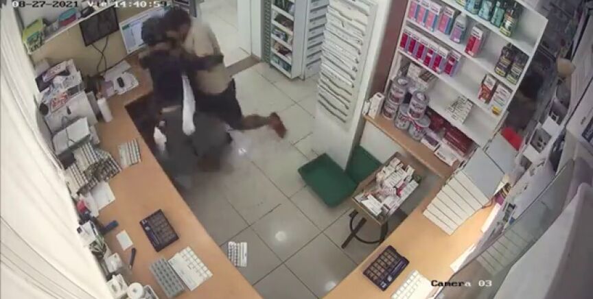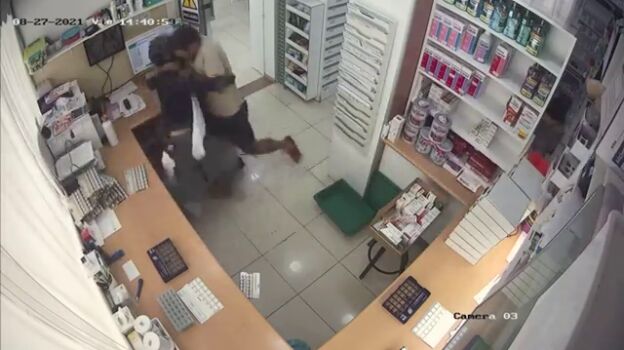 Tal y como se ve en las imágenes, el atracador entró en la farmacia con un casco de motocicleta puesto y pidió al empleado que le entregara todo el dinero que hubiera en la caja, amenazándole a él y a otros tres clientes que se encontraban allí con una navaja. Fue entonces cuando el ladrón comprobó que había poca recaudación y se dirigió inmediatamente al almacén. Es en ese momento cuando el farmacéutico se enfrentó y se abalanzó sobre el ladrón, que le asestó hasta 30 puñaladas antes de huir del lugar. Ahora, el empleado se recupera de las heridas en casa de sus padres.