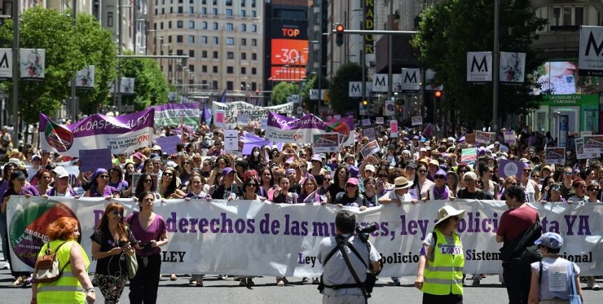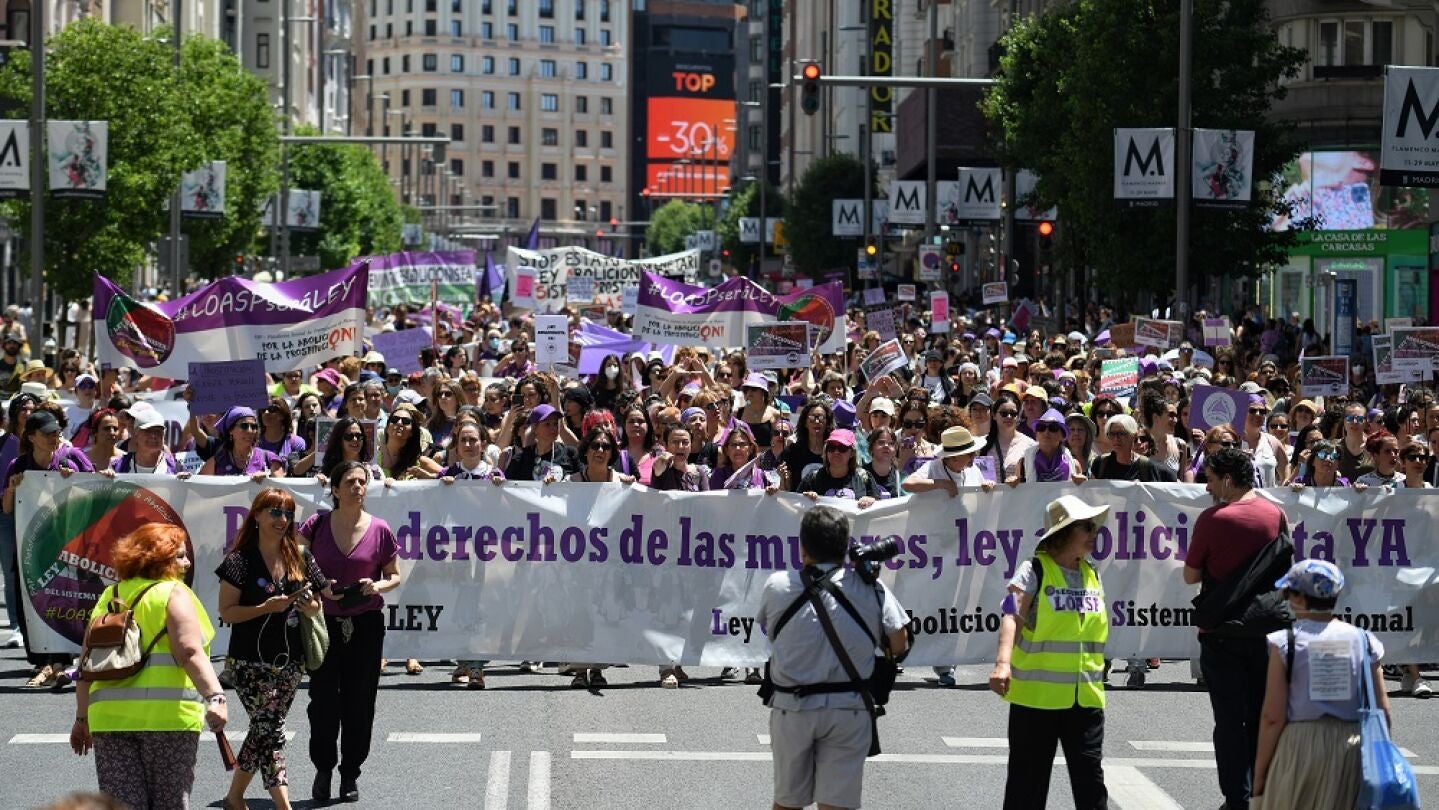 Miles de personas han recorrido las calles de Madrid este sábado para exigir la abolición de la prostitución. Más de 175 organizaciones feministas han impulsado esta marcha, en la que se ha reclamado la aprobación en el Congreso "de manera urgente" de una Ley Orgánica -un texto redactado por el propio movimiento- para luchar "contra esta lacra".