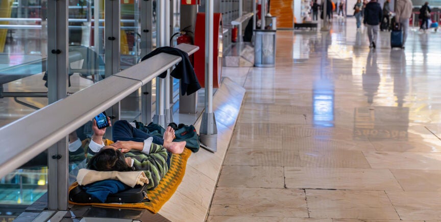 AENA va a poner controles para impedir que personas sin hogar accedan a las terminales del aeropuerto de Aeropuerto Adolfo Suárez Madrid-Barajas durante la noche, lo que dejará en la calle a cientos de ellas.