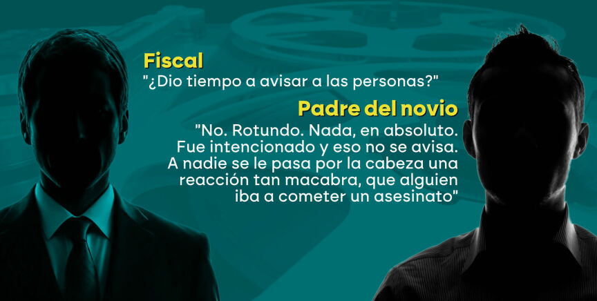 "Mi hijo me gritó: 'Papá, que me muero'. Me tiré al suelo y vi que tenía la pierna y el pie destrozados. Fui a por mi mujer, que estaba inconsciente, e intenté ver si respiraba. Al lado estaba mi hermano, luchando por su vida... Hasta que se fue al cielo", relató con la voz entre cortada ante la jueza. A la pregunta de la Fiscalía sobre si hubo tiempo para avisar a los invitados, fue rotundo: "Nada, en absoluto. Fue intencionado y eso no se avisa. Nadie puede imaginar una reacción tan macabra".